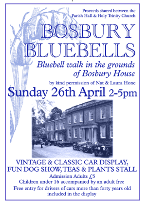 By kind permission of Nat and Laura Hone, come and see the spectacular display of bluebells, and enjoy some classic cars, watch a dog show and take some plants home!