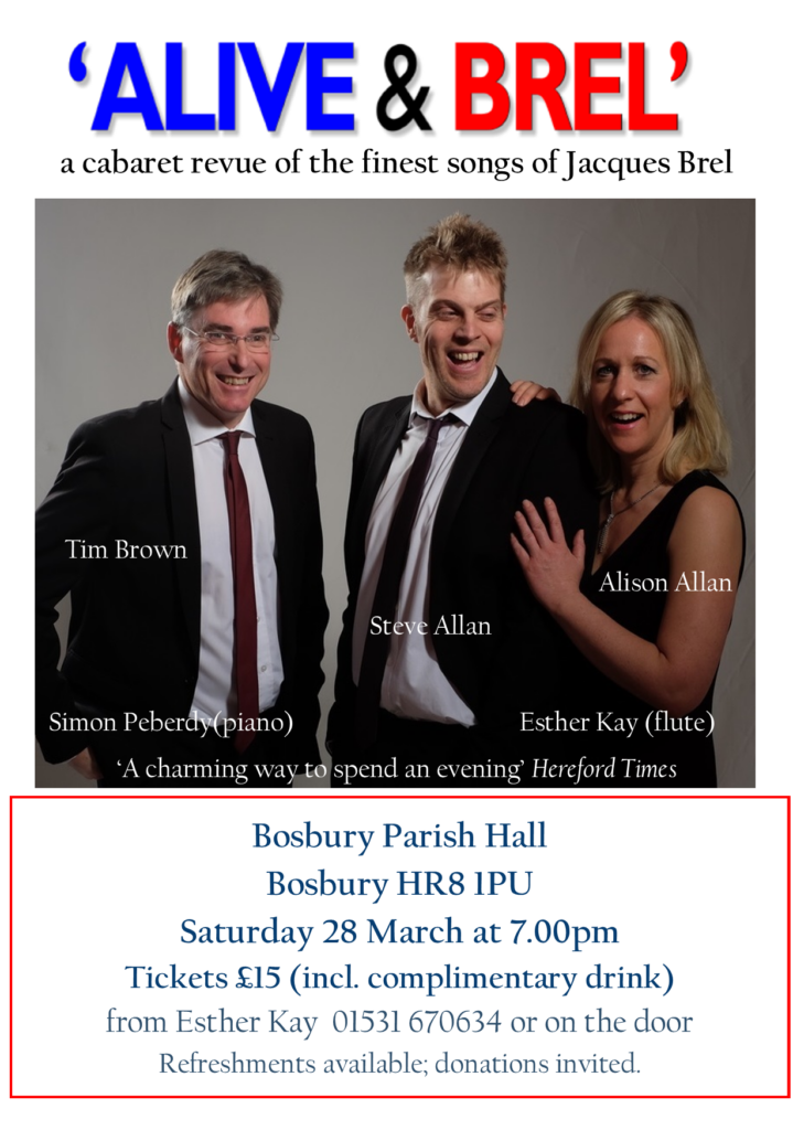 For tickets and more details of upcoming events please contact Esther Kay 01531 670 634