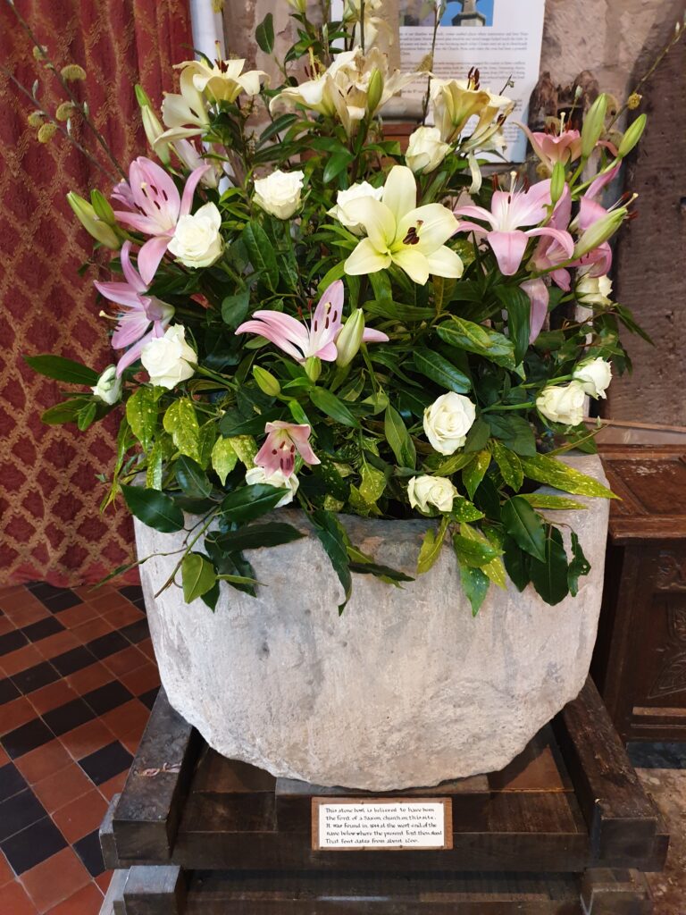 The stone bowl believed to be the Saxon font